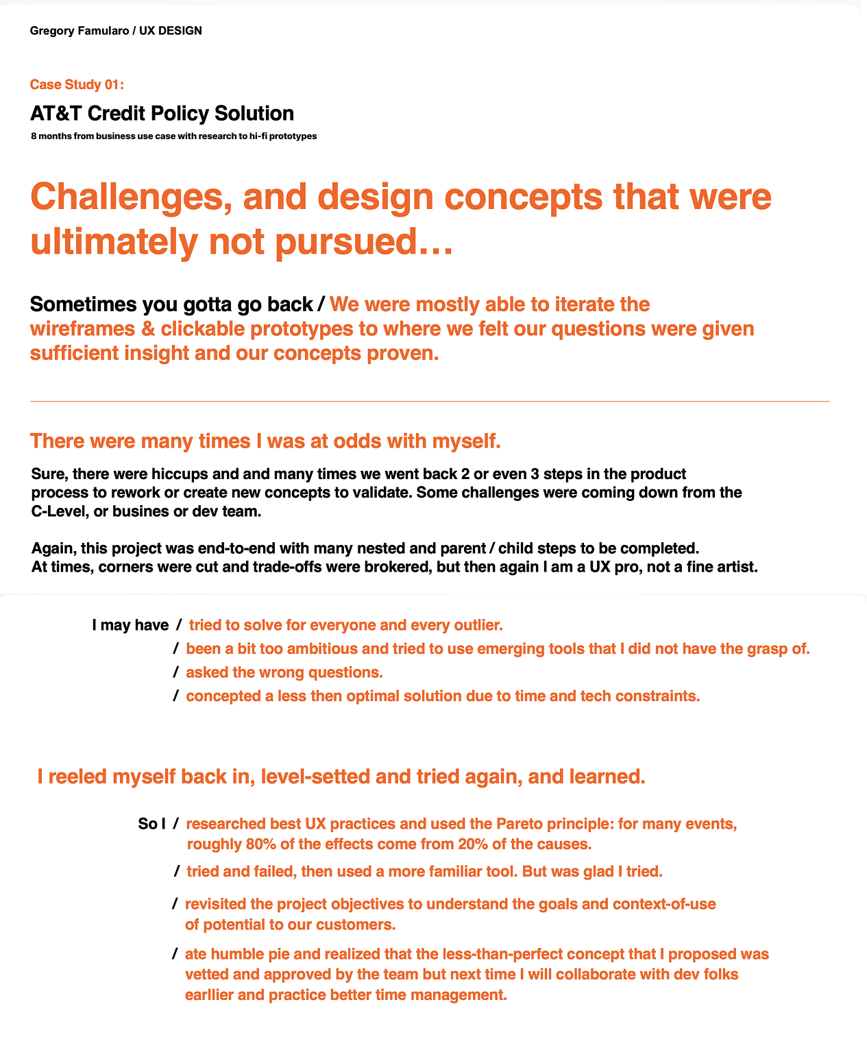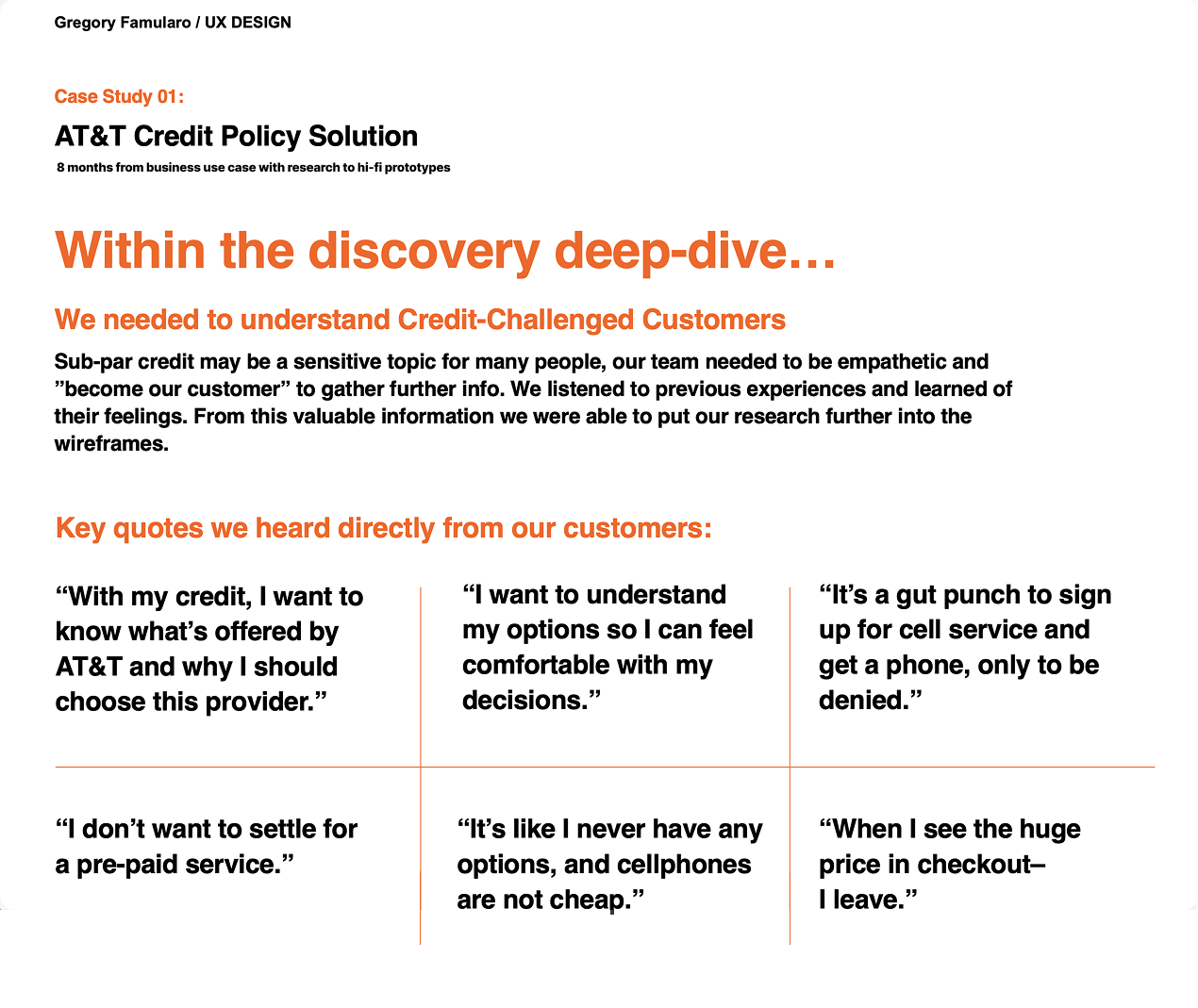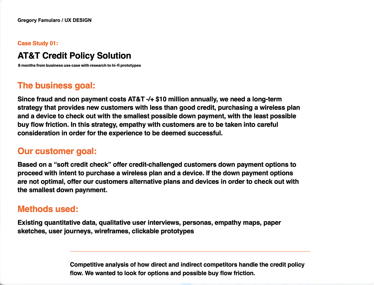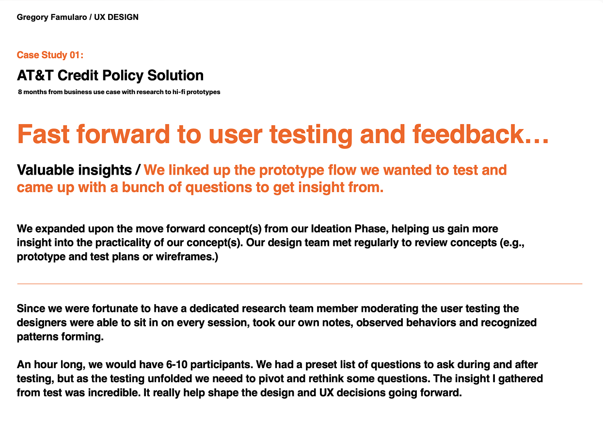 Projected to save AT&T -/+ $10 million annually in fraudulent losses, and generate -/+ $14 million annually by retaining new acquisitions within the buy flow. Completely thrilled would-be new customers (in user-testing) by recommending alternative downpayment and/or mobile device options.